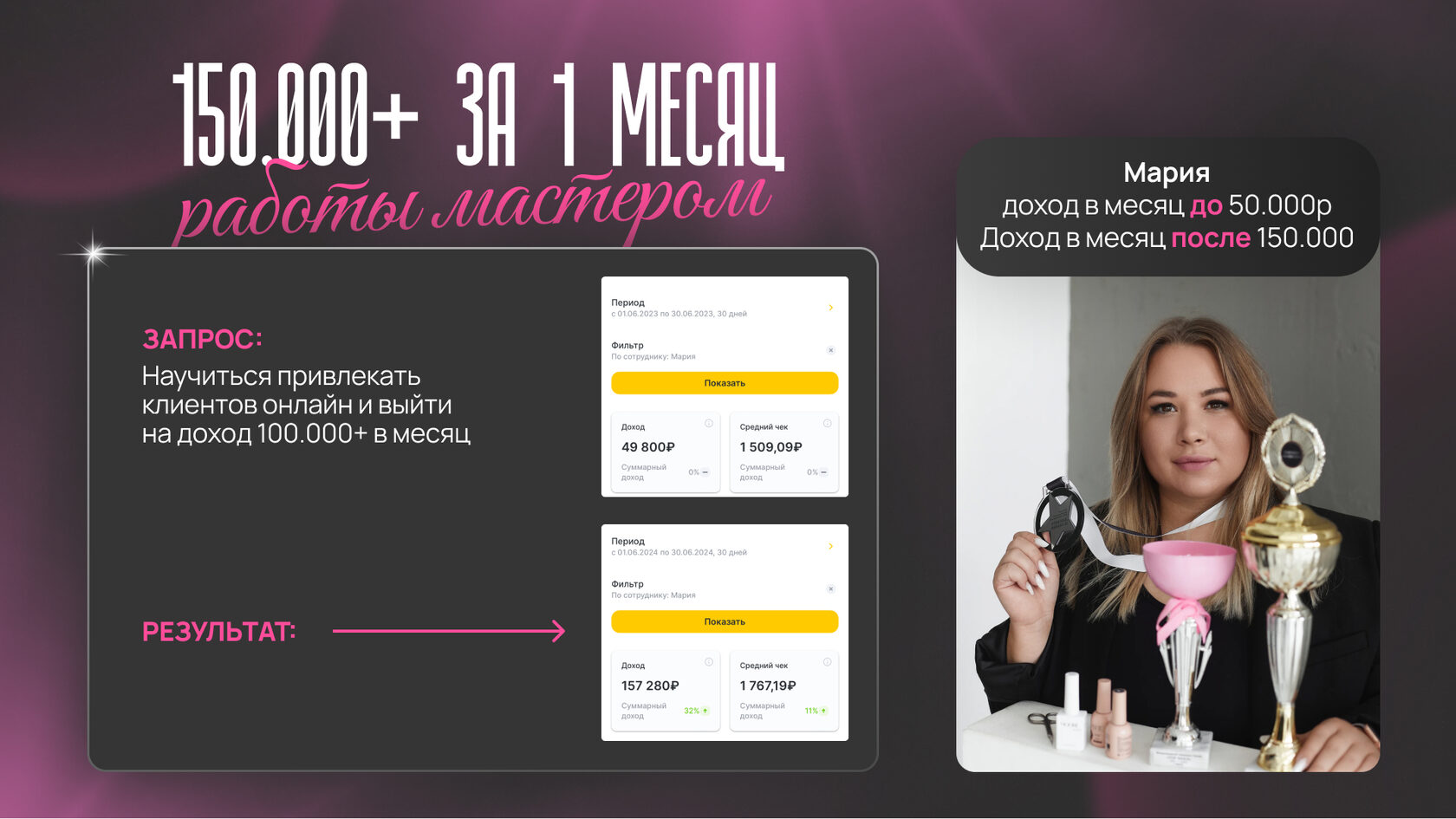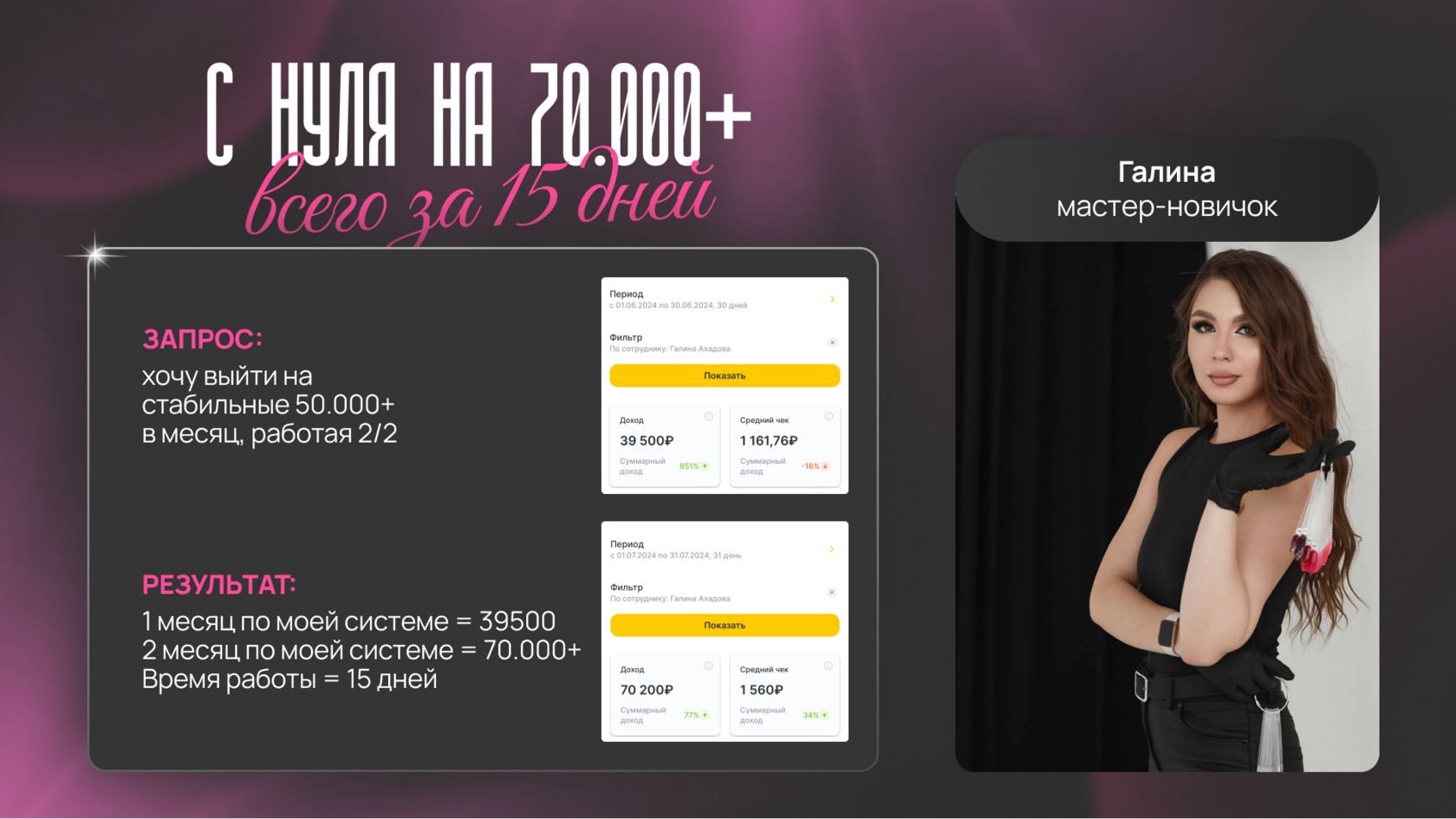 Я уверена, что мастера в индустрии красоты всегда хотят расти в доходах, тем более у нас нет этого потолка.